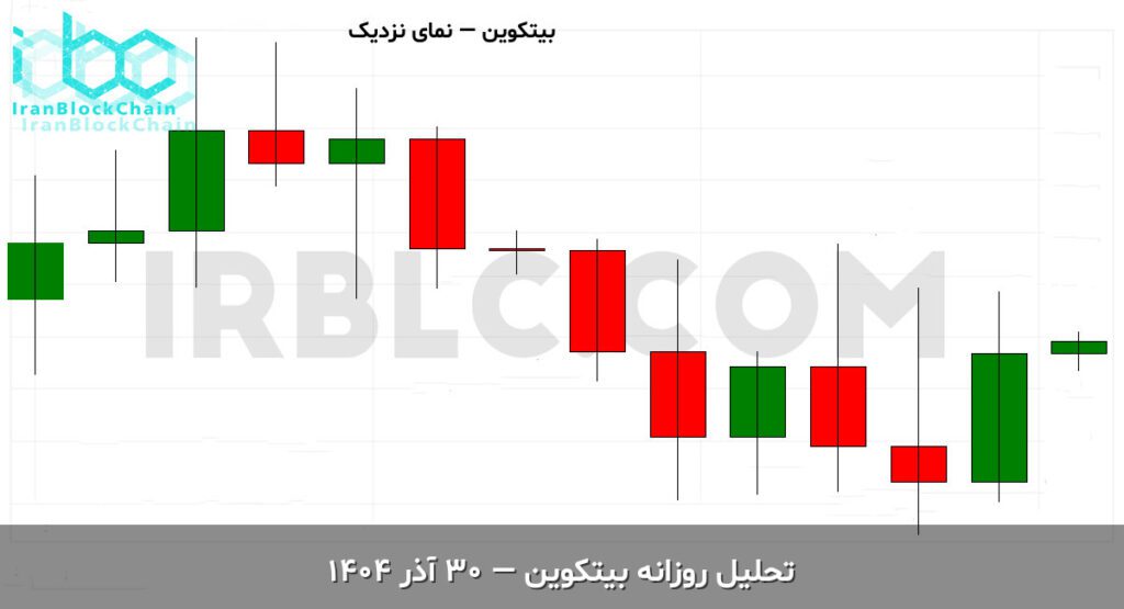 در تحلیل تکنیکال با بررسی 30 کندل اخیر، روند کلی بازار را میتوان به صورت زیر تبیین کرد. ابتدا قیمت از حدود 86,637 دلار شروع شده و تا سقف 94,588 دلار رشد کرده است که نشاندهنده یک حرکت صعودی قوی در میانه دوره است. اما پس از آن، قیمت با اصلاح مواجه شده و به حدود 88,385 دلار کاهش یافته است. نمودار کندلها نشاندهنده چندین الگوی مهم است، از جمله چند کندل دوجی که نمایانگر تردید بازار هستند و همچنین چند کندل با بدنههای بلند که نشانگر فشار خرید یا فروش قوی میباشند. اندیکاتور RSI در این بازه احتمالاً در محدوده بالاتر از 70 قرار گرفته که نشانه شرایط اشباع خرید و احتمال اصلاح قیمت است. همچنین، میانگینهای متحرک کوتاهمدت (مانند 10 و 20 روزه) در ابتدا روند صعودی داشتند ولی در ادامه با همگرا شدن و حتی عبور میانگین کوتاهمدت از بلندمدت، هشداری برای تغییر روند صادر کردهاند. حجم معاملات نیز در نقاط سقف و کف قیمتی افزایش یافته که تأییدکننده این سطوح حمایتی و مقاومتی است. در تصویر نمودار کلی زیر، میتوان روند و نوسانات قیمتی را به وضوح مشاهده کرد.