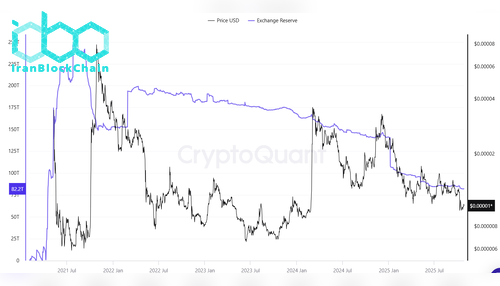 علاوه بر این، میزان توکنهای شیبا اینو ذخیرهشده در صرافیهای رمز ارز کمی بیش از ۸۲ تریلیون است که بسیار نزدیک به پایینترین سطح چهار سال اخیر قرار دارد. این روند نشان میدهد سرمایهگذاران داراییهای خود را از پلتفرمهای متمرکز به کیف پولهای شخصی منتقل کردهاند و در نتیجه فشار فروش فوری کاهش یافته است.